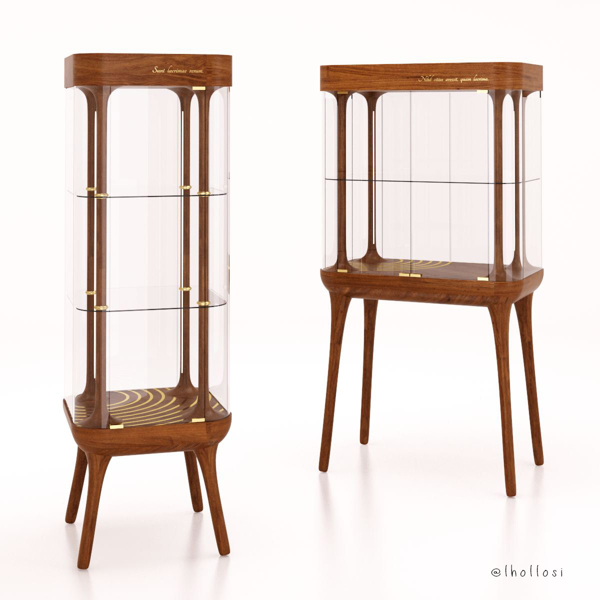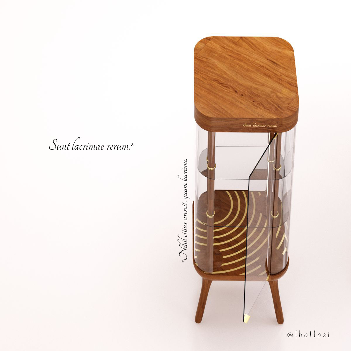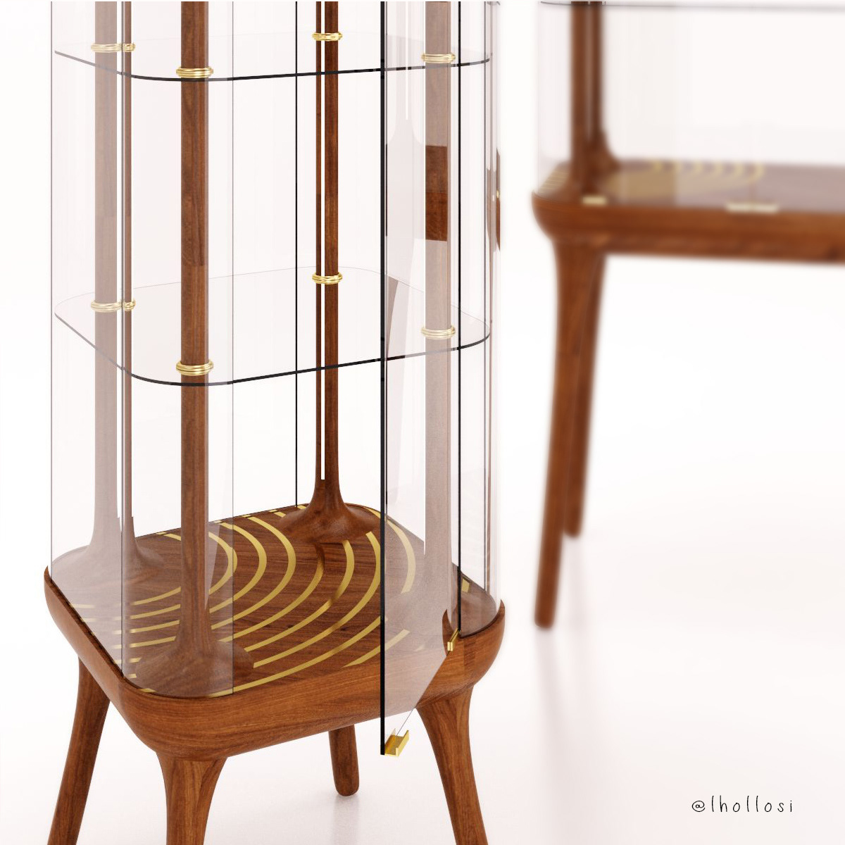 Oak, brass, glass.
