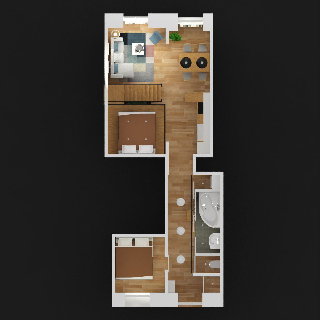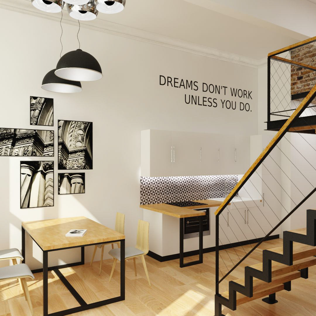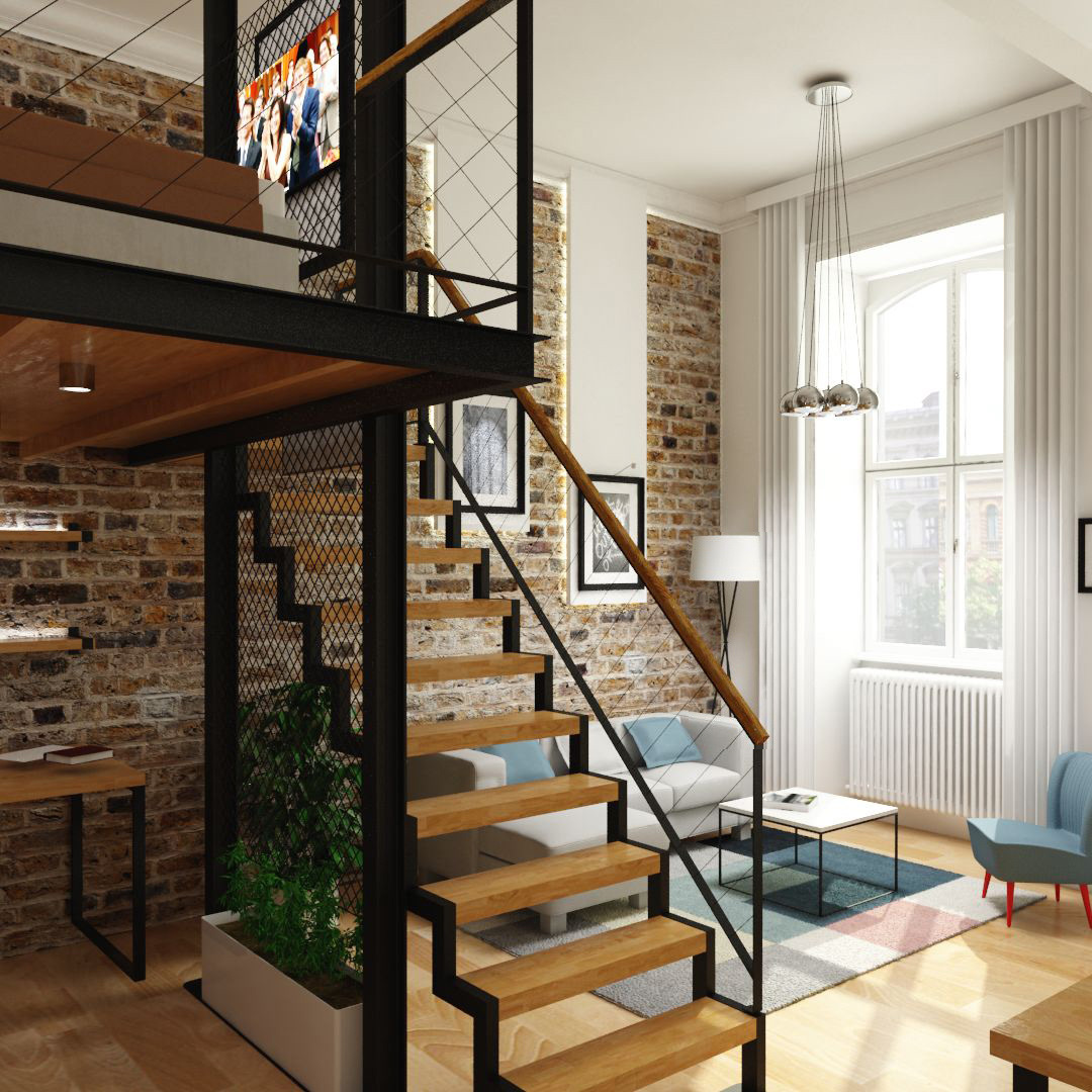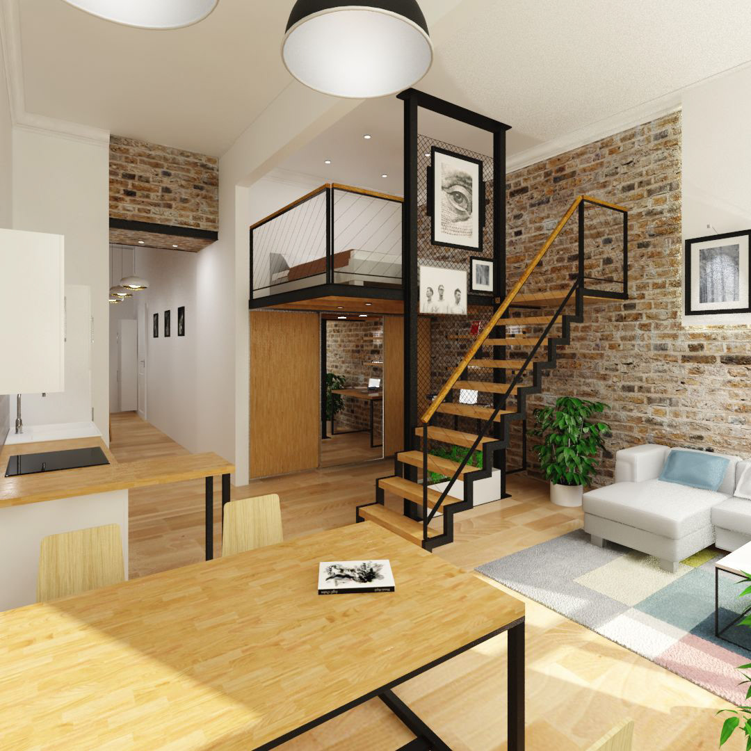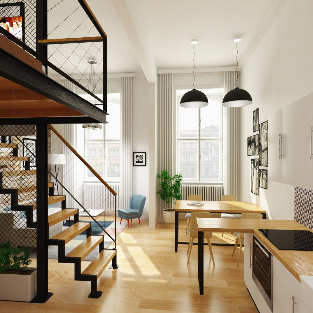 Interior design in the downtown of Budapest for a young couple in 49sqm.